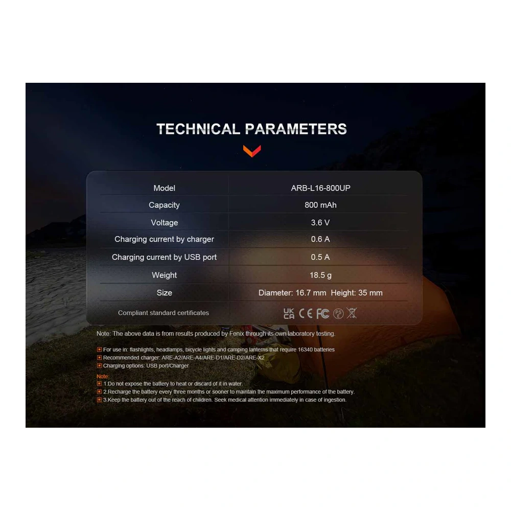 800mAh 16340 USB-C Li-ion aku (Fenix)