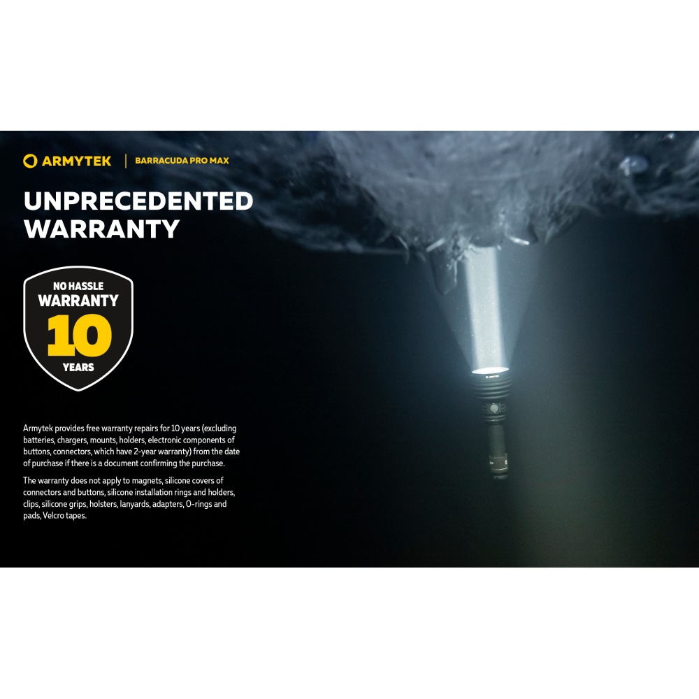 Kõigile Armytek lampidele kehtib alates ostukuupäevast kahe aasta pikkune pretensioonide esitamise õigus tulenevalt Eesti Vabariigis kehtivast seadusandlusest. Pretensioonid tuleb esitada lambi müüjale. Armytek lampidele annab garantii tootmisdefektide vastu lambi tootja Armytek GmbH (www.armytek.com). Tootjapoolse garantiiteeninduse saamiseks pärast kahe aasta möödumist ostukuupäevast tuleb pöörduda otse tootja poole. Garantiiteeninduse eelduseks on lambi ostudokument.
