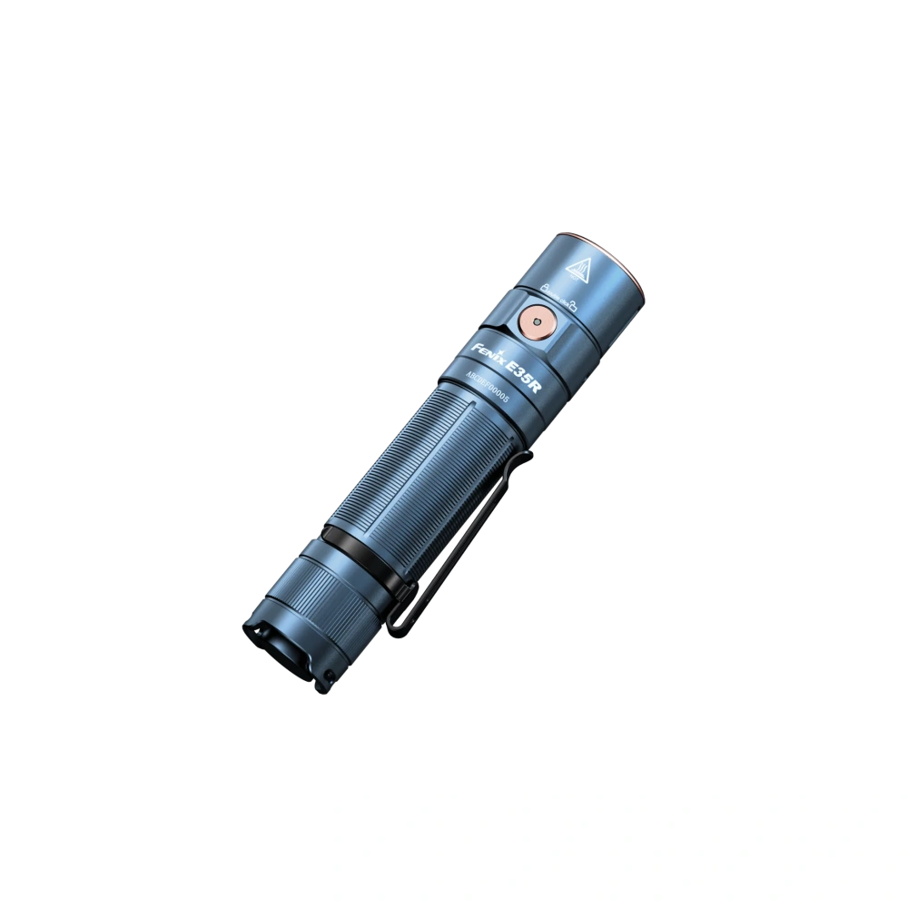 Fenix E35R näol on tegemist ühe kompaktseima saadavaloleva EDC (every day carry) universaallambiga, mis kasutab suure mahutavusega uue generatsiooni tüüp 21700 korduvlaetavat Li-ion akut ning integreeritud otselaadimissüsteemi selle laadimiseks. Fenix E35R on tõeline hunt lambanahas. Kõigest 120mm pikkune ning 26,5mm läbimõõduga lamp omab maksimaalset valgusjõudu 3100 luumenit. Lambi optikaks on universaallampidele omane kombineeritud TIR optika, mis tagab väga meeldiva ning sujuva valgusjoonise. LED elemendina on kasutusel uusim Luminus SST70 element. Valgusjoonise kontsentreeritud valguspunkt on lai ning läheb sujuvalt üle ühtlaselt ja hästi valgustatud äärealadele. Kogu valgusjoonis on meeldivalt balanseeritud ning maksimaalseks valgusvoo ulatuseks kuni 260 meetrit. Fenix E35R'iga on kohe ostes kaasas 5000mAh mahutavusega tüüp 21700 li-ion aku. Tegemist on standardse akuelemendiga, mis on soovi korral kergesti vahetatav. Laadimiseks ei pea akut lambist eemaldama, vaid see on otselaetav läbi lampi integreeritud USB-C otselaadimispordi. Lamp ise on varustatud aku laetustaseme indikatsiooniga, laadimisprotsessi indikatsiooniga ning tühjeneva aku hoiatusega. Fenix E35R'il on kokku viis valgustugevust: 30lm, 150lm, 350lm, 1000lm ning 3100lm. Töösse lülitamine ja valgustugevuste valimine käib mugava külglülitiga. Lamp on kaitstud muuhulgas integreeritud ülekuumenemise kaitsega, tahtmatu sisselülitamise kaitsega (nn lukustusrežiim) ning pöördpolaarsuskaitsega valesti sisestatud toiteallika kaitseks. Uudisena on Fenix E35R akutoru tagaossa integreeritud tugev kinnitusmagnet, mille abil saab lambi kinnitada ferromagneetilistele pindadele ja muuta see käed-vabad töövalgustiks.