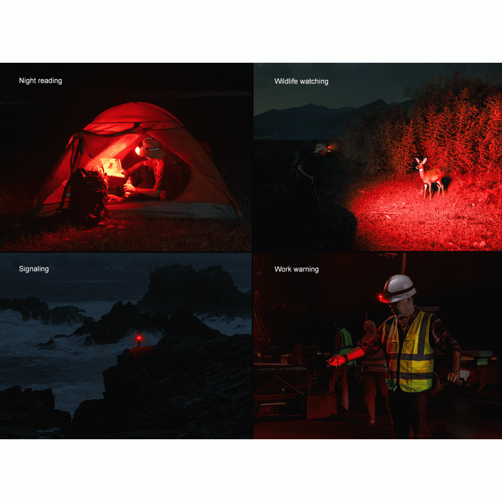 | Töörežiimid (ANSI FL1) | Põhivalgus: 1600lm@3h15min, 600lm@5h, 130lm@25h, 30lm@74h30min; hajus valgus: 350lm@9h, 70lm@25h, 5lm@292h; punane: 20lm@39h, 3lm@185h, vilkuv 3lm@370h |