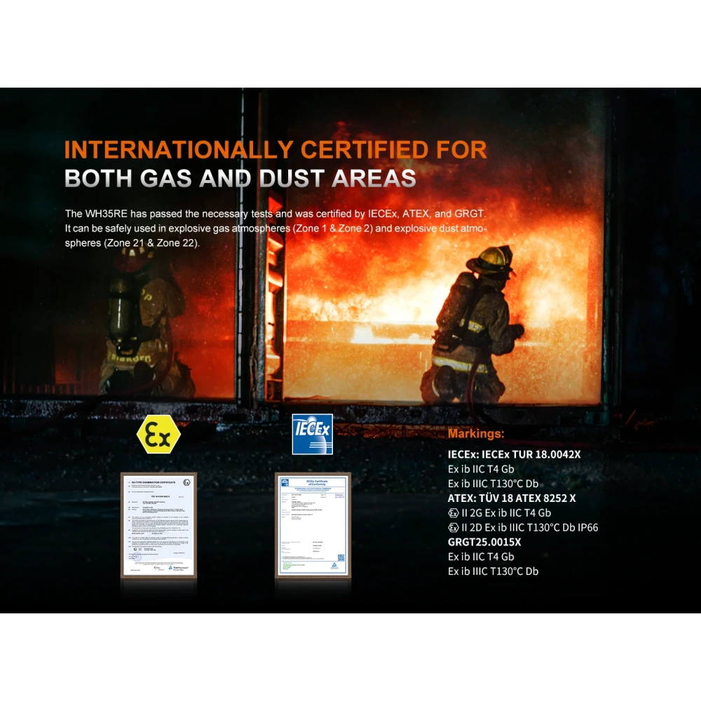 Fenix WH35RE on innovatiivne otselaetav üleni metallist korpusega multilamp kasutamiseks plahvatusohtlikes keskkondades (va. maaalused kaevandused). Tegemist on sisemiselt ohutu konstruktsiooniga lambiga, mis omab IECEx, ATEX ja GRGT sertifikaate. WH35RE sobib ohutuks kasutamiseks tsoonides 1 ja 2, kus plahvatusohtlike gaaside segu kuulub klassidesse IIA, IIB ja IIC ning olukordadesse, kus põlevate ja plahvatusohtlike lendlevate osakeste (tolmud) kontsentratsioon vastab tsoonidele 21 ja 22 (kütuse- ja keemiatööstused, tekstiilitööstused, päästeteenistused, metallurgiatehased, jõujaamad, paberi- ja tselluloositehased jne).