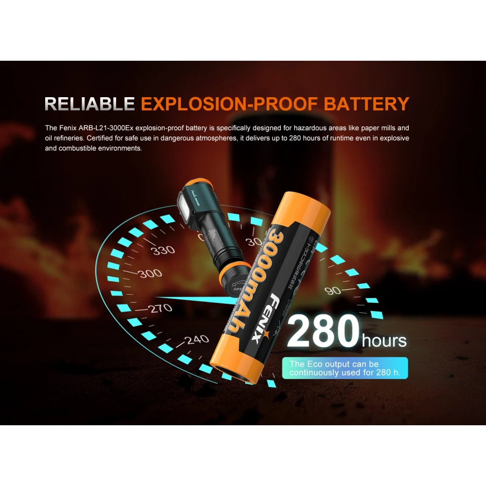 | Komplekti kuulub | Lamp, Fenix ARB-L21-3000Ex li-ion aku, laadimiskaabel, vooluvõrgu adapter, tagavara rõngastihend, tööstuslik libisemisvastane kummist peapael kiivrile, kasutusjuhend |