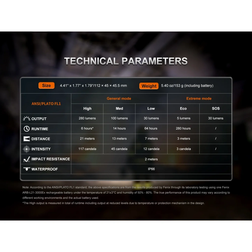 | Primaarse toiteallika tüüp | Tüüp 21700 EX aku - Fenix ARB-L21-3000Ex |