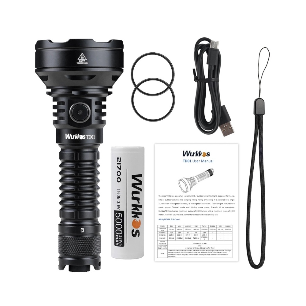 Wurkkos TD01C on kompaktne tüüp 21700 toiteallikal töötav sihtotstarbeline otsingulamp, mis sobib hästi eelkõige kergemateks otsinguteks ja jahipidamiseks, kui ka koduseks kasutamiseks ja teenistuslambiks. Tegemist on Wurkkose mudeli TD01 edasiarendusega, mis on omale saanud täielikult reguleeritud toitesüsteemi (buck driver / tähis "C" lambi nimetuses). See tähendab seda, et lisaks stabiilsele valgusele (non-PWM) on ka töörežiimid stabiilse valgustugevusega nii kaua kui aku ja lambi töötemperatuur seda võimaldavad. Valgustugevus ei hakka lineaarselt vähenema pinge langusega akus.