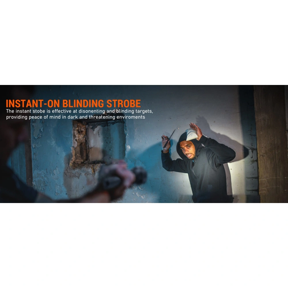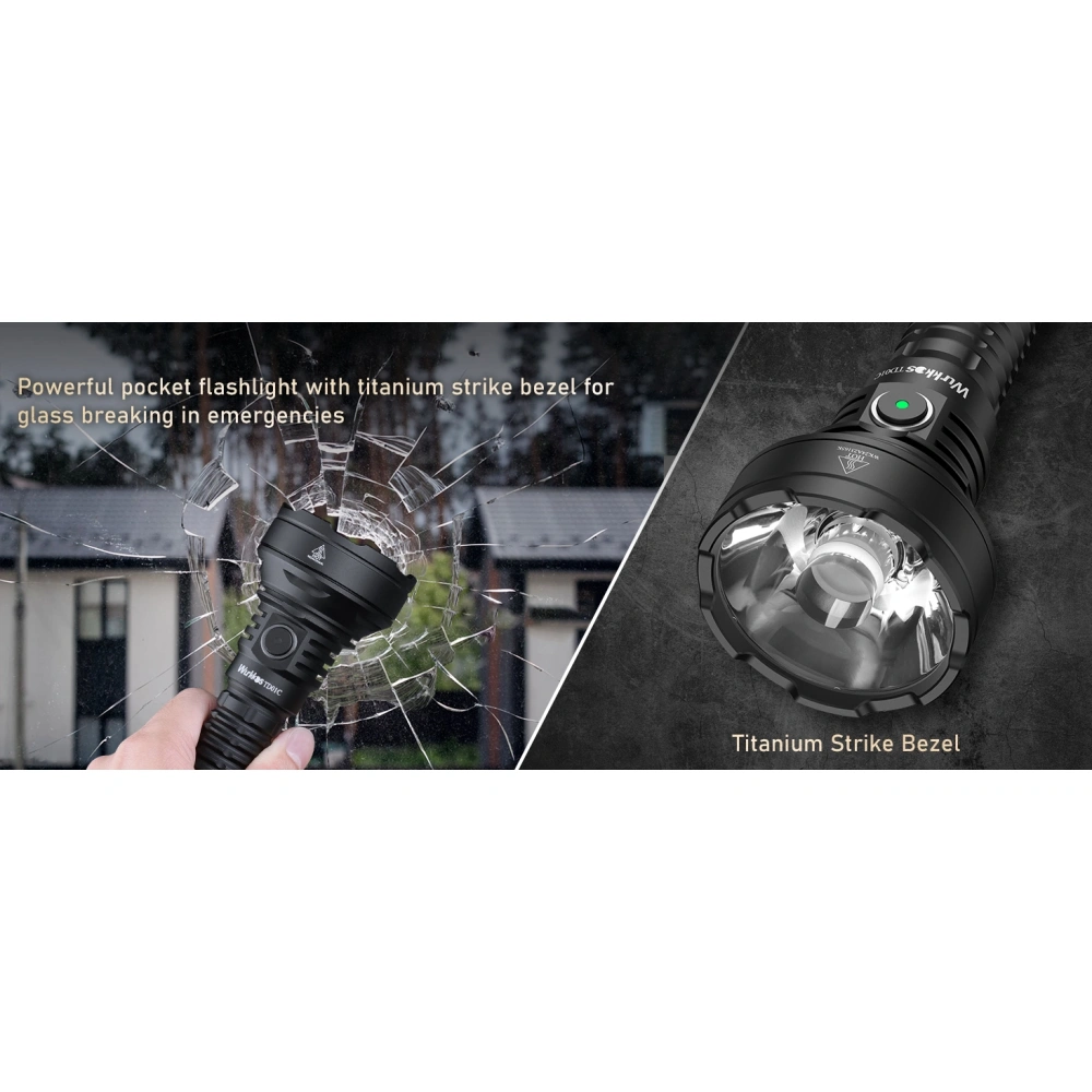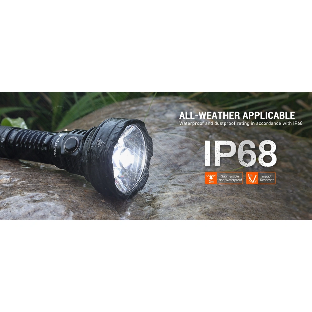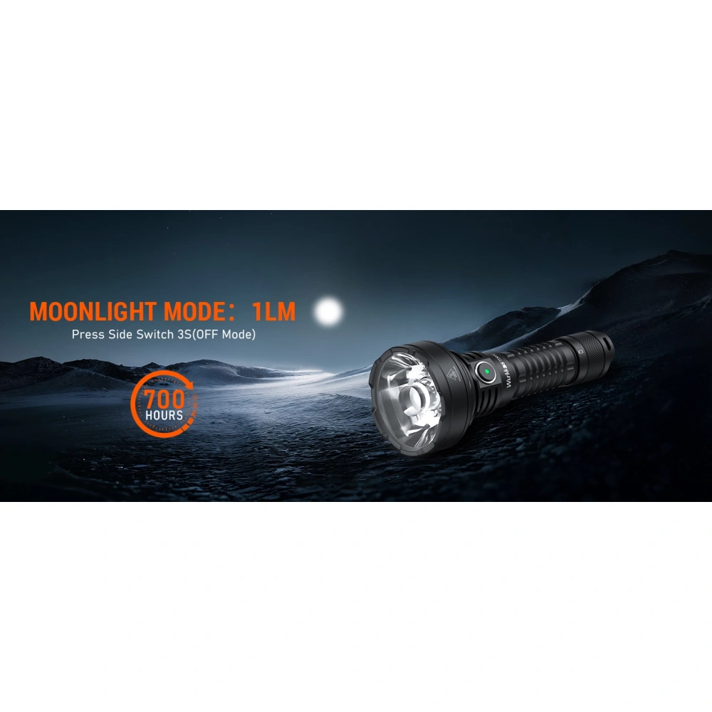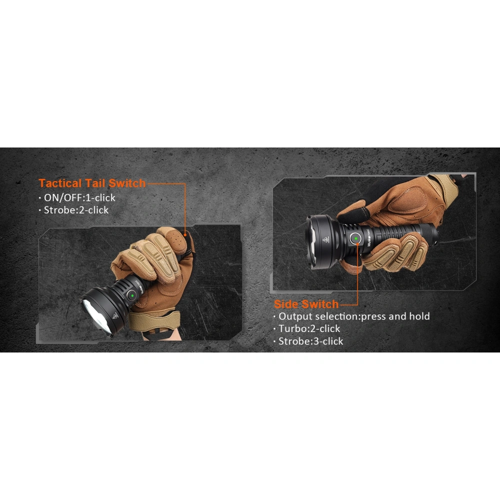 Töörežiimid (ANSI FL1) | 1lm@700h, 30lm@50h, 150lm@15h, 350lm@6,5h, 800lm@3h (sis.stepdown), 1800lm@2h (sis.stepdown), 1800lm strobo, 350lm SOS, 1800lm majakas |